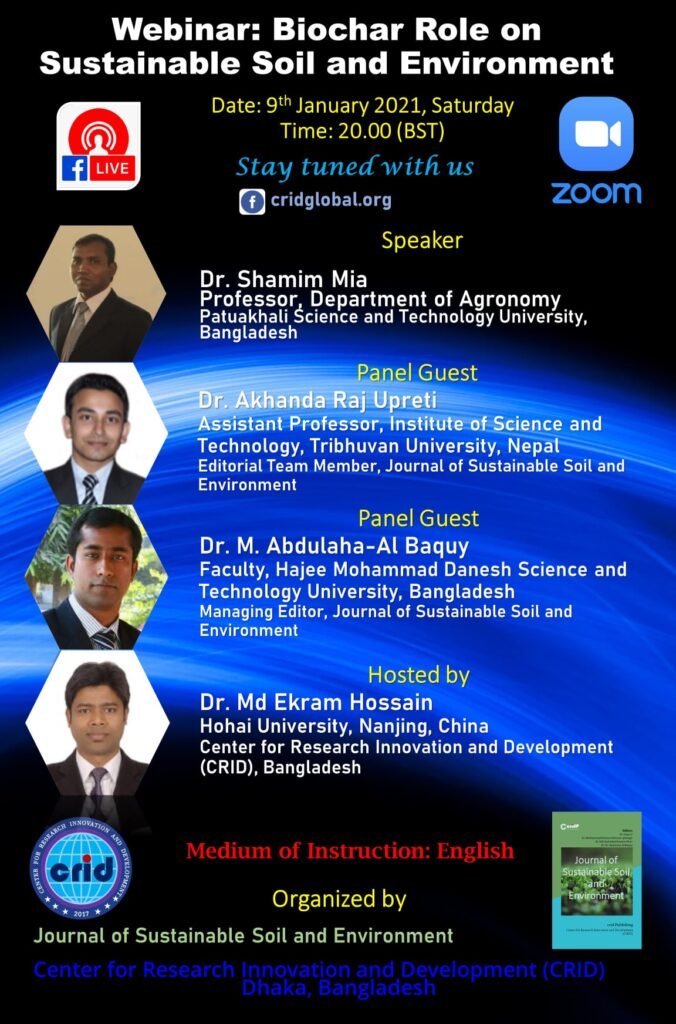 Webinar on “Biochar Role on Sustainable Soil and Environment”